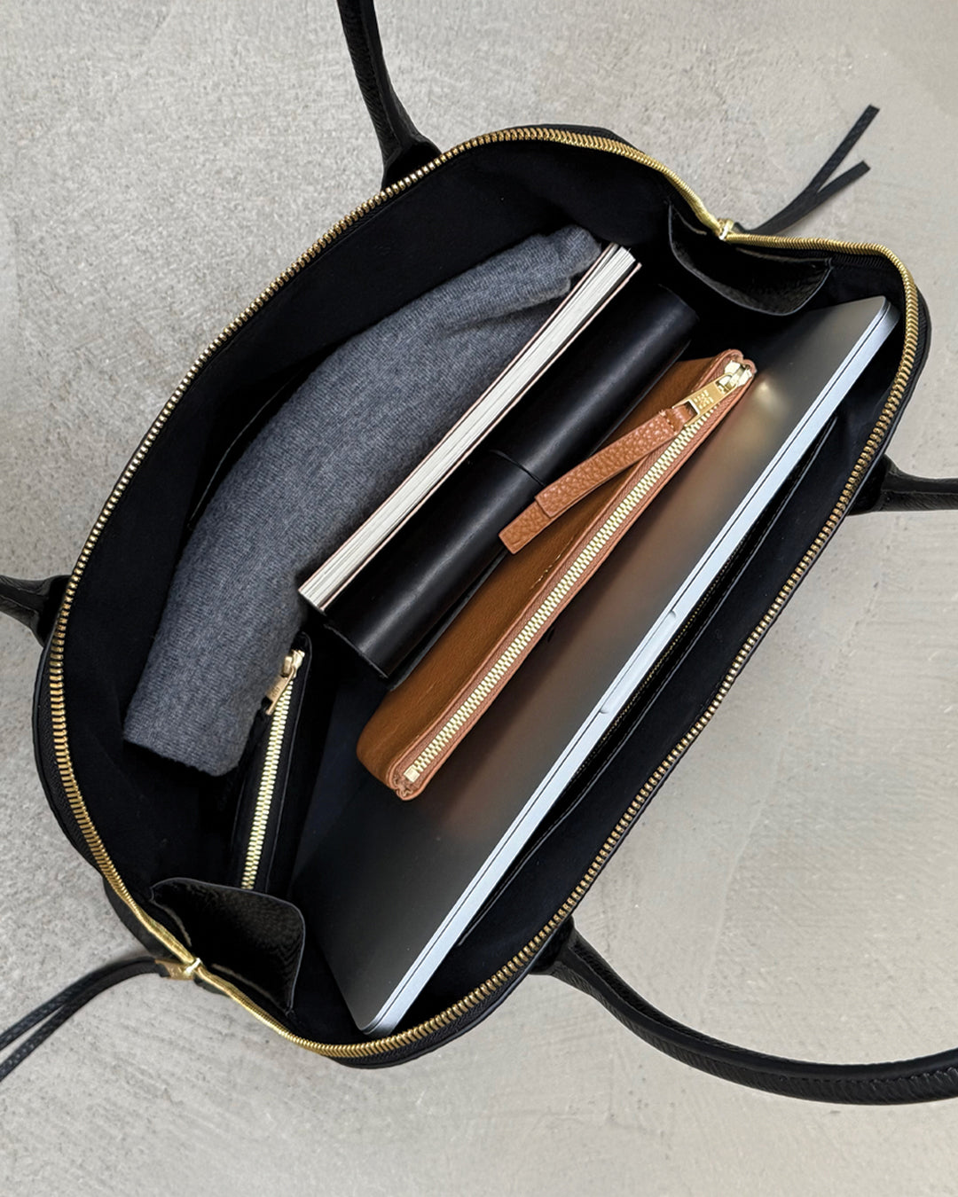 The Elva Tote is a spacious everyday bag that easily fits your laptop along with everything else you need for the day. Crafted from our beautifully luxurious leather with a natural grain, it exudes quiet quality. The distinctive zipper design - extending all the way down on both sides - gives Elva its signature look, while the handles rest comfortably on your shoulder.