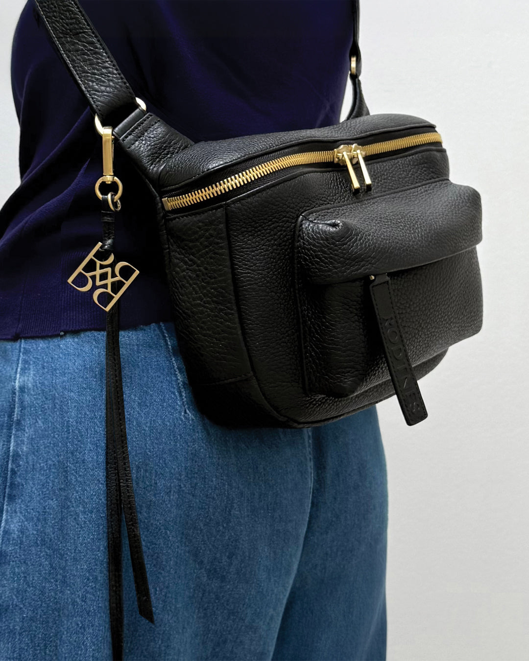 – Leather strap with a 3x3 cm signature logo hardware in brushed gold