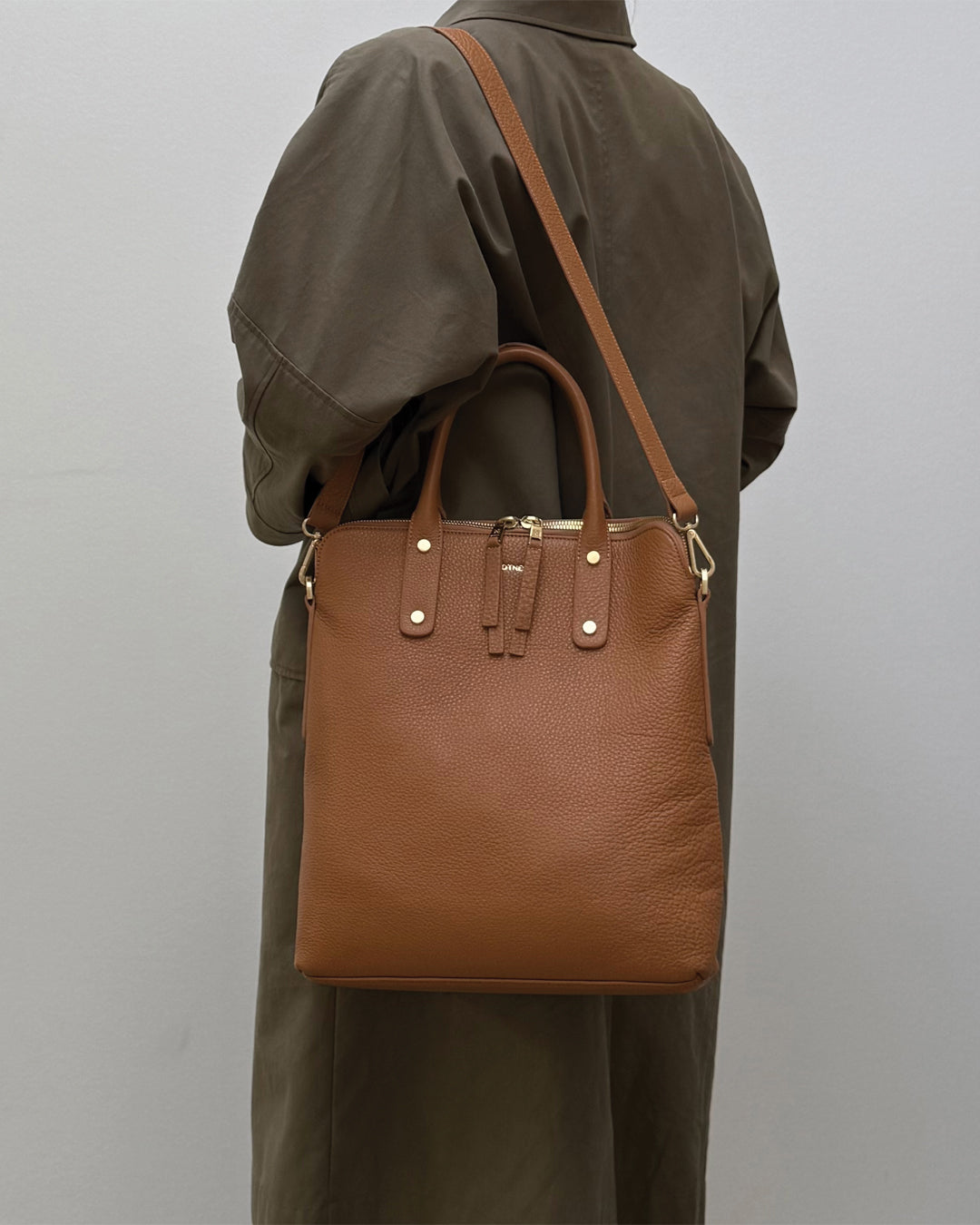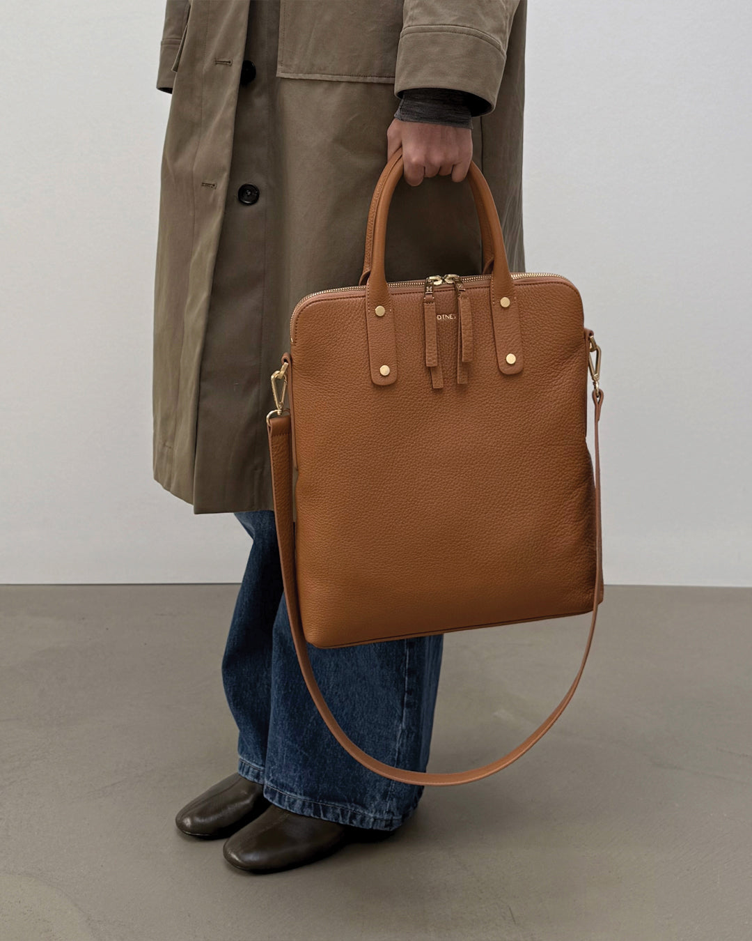 All RODTNES bags are crafted from 100% natural, premium-quality calfskin leather. The grained surface appears through a specialized treatment - a type of “washing” process - that causes the leather to shrink, allowing the hide’s natural grain to emerge. This results in a rich, thick, and structured leather with depth and character.